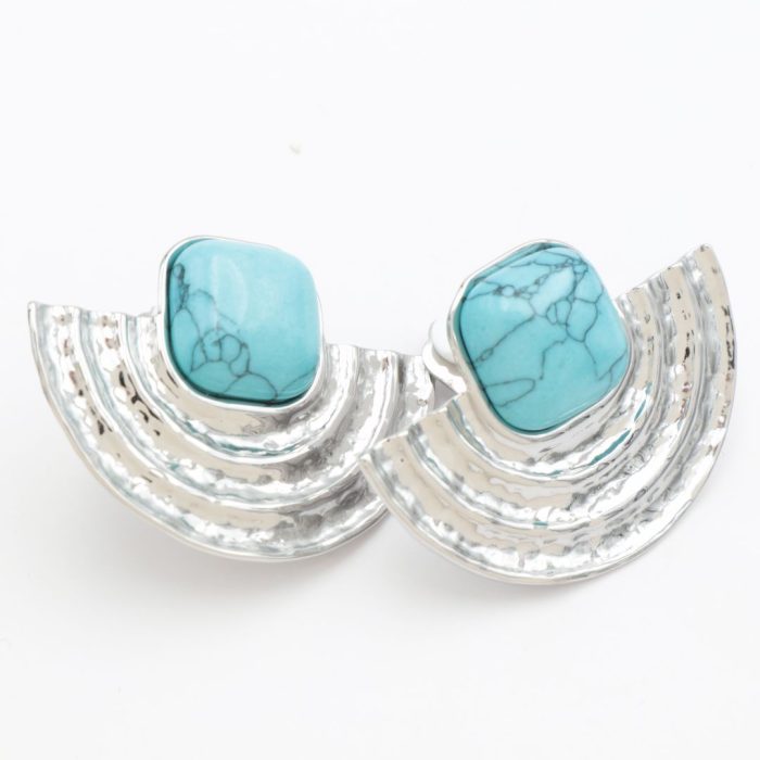 Μεγάλα ατσάλινα σκουλαρίκια με κλιπ (κατάλληλα για μη τρυπημένα αυτιά), σε ασημί χρώμα, με μεγάλη γαλάζια πέτρα χαολίτη.