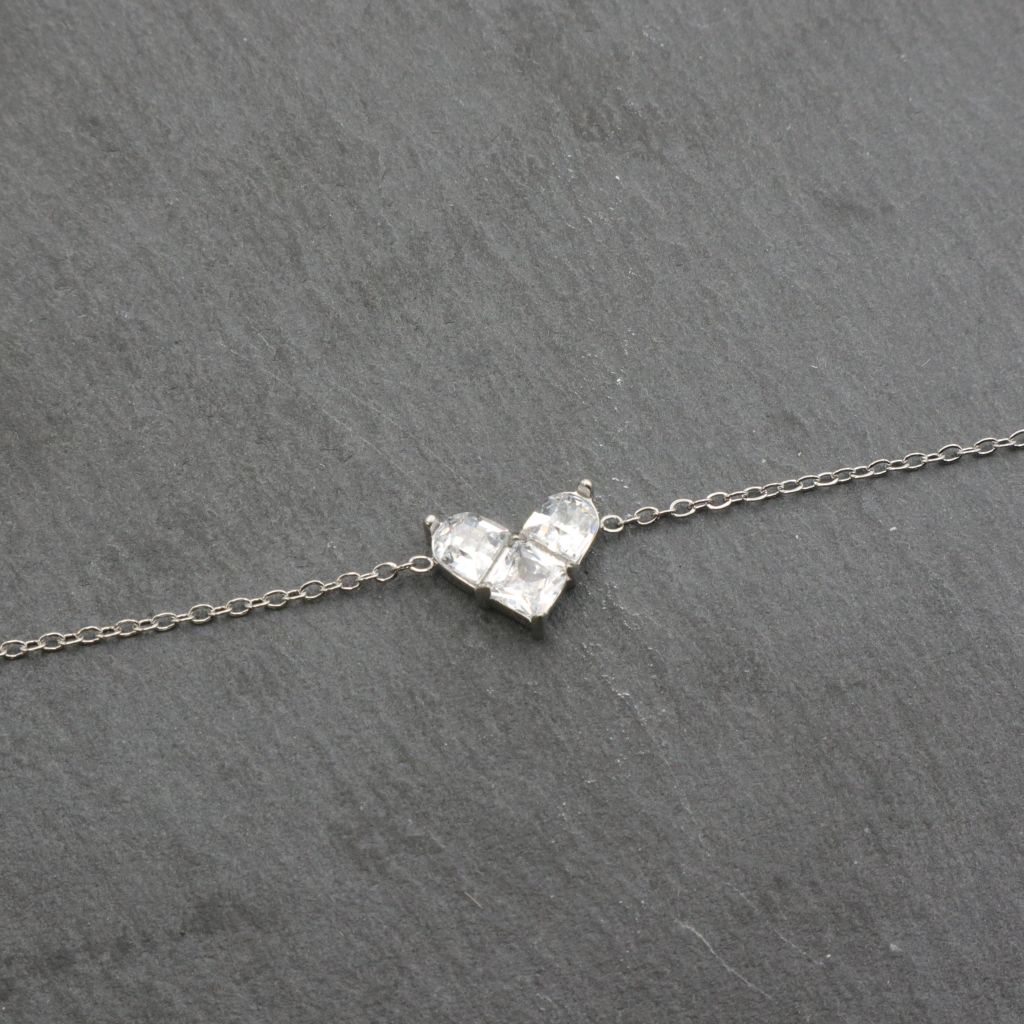 Ατσάλινο βραχιόλι με καρδιά φτιαγμένη από 3 κρύσταλλα, σε ασημί χρώμα. Κούμπωμα με παπαγαλάκι. Το ατσάλι είναι ανοξείδωτο και ανθεκτικό σε νερό και ιδρώτα. Διαθέτει αλυσιδάκι επέκτασης.