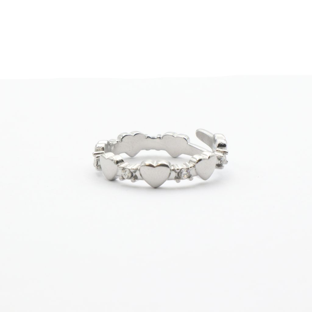 Aτσάλινο δαχτυλίδι με καρδιές, διακοσμημένο με στρας, σε ασημί χρώμα!
