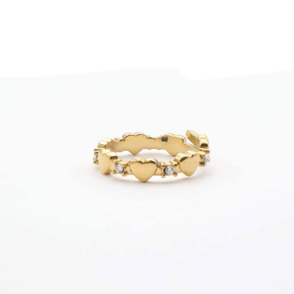 Aτσάλινο δαχτυλίδι με καρδιές, διακοσμημένο με στρας, σε χρυσό χρώμα!