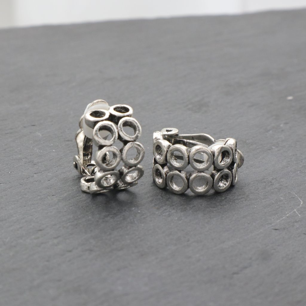 Σκουλαρίκια για πάνω στο αυτί με κλιπ (κατάλληλα για μη τρυπημένα αυτιά), σε παλαιωμένο ασημί χρώμα. Τα σκουλαρίκια διαθέτουν άνετο και εύκολο κούμπωμα κλιπ.
