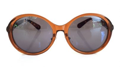 Γυαλιά ηλίου με στρογγυλό καφέ σκελετό, βραχίονες με ταρταρούγα και μαύρο φακό.