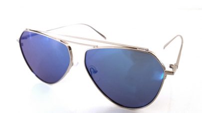Γυαλιά ηλίου σε στυλ aviator με ασημί μεταλλικό σκελετό και φακό μπλε καθρέφτη. Με μεταλλική ένωση στο πάνω μέρος των φακών.