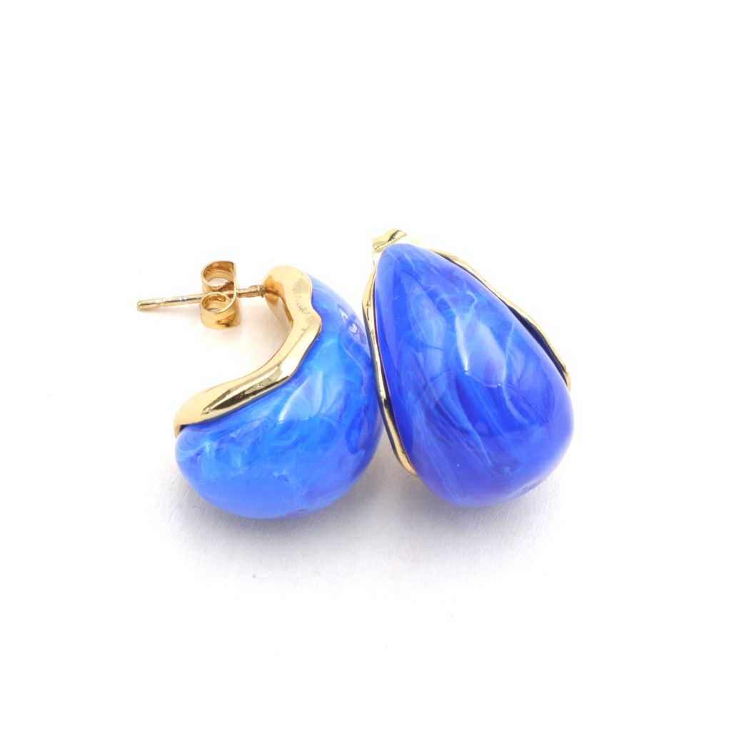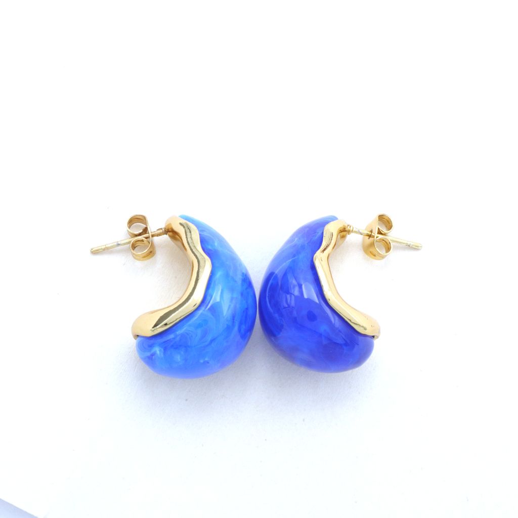 Μαγευτικές σταγόνες από μπλε πέτρα με νερά, πάνω σε χρυσή κυρτή βάση. Ανακάλυψε τα ατσάλινα σκουλαρίκια Aqua Drops και χάρισε στον εαυτό σου ή κάπου αλλού ενα πολύ ιδιαίτερο ζευγάρι σκουλαρίκια. Statement αλλά χωρίς υπερβολές, και από επιχρυσωμένο ανοιξείδωτο ατσάλι που θα παραμείνει ανθεκτικό.