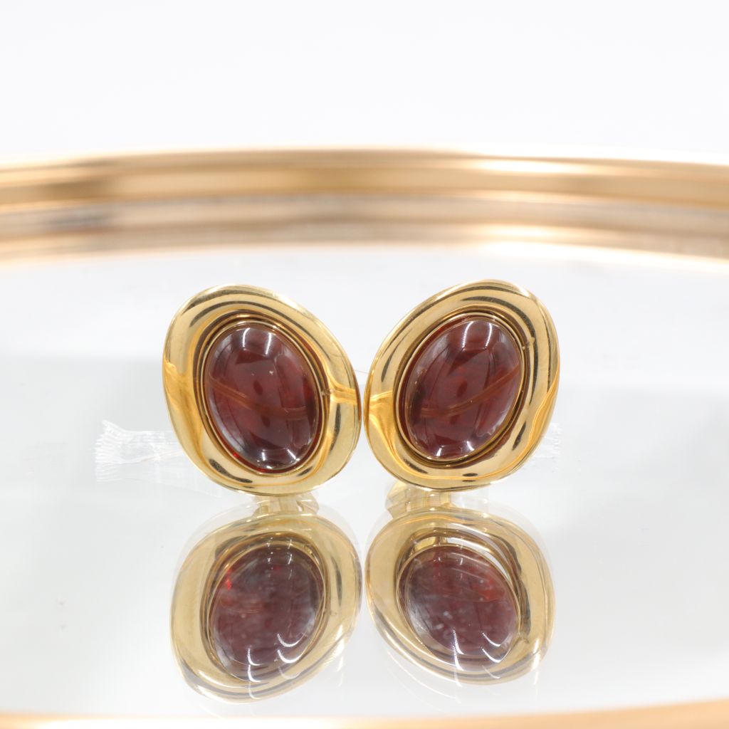 Ατσάλινα σκουλαρίκια με κλιπ (κατάλληλα για μη τρυπημένα αυτιά), σε χρυσό χρώμα, με οβάλ καφέ διάφανη πέτρα. Κουμπώνει με κλιπ χωρίς να πονάει και είναι ελαφρύ και άνετο.