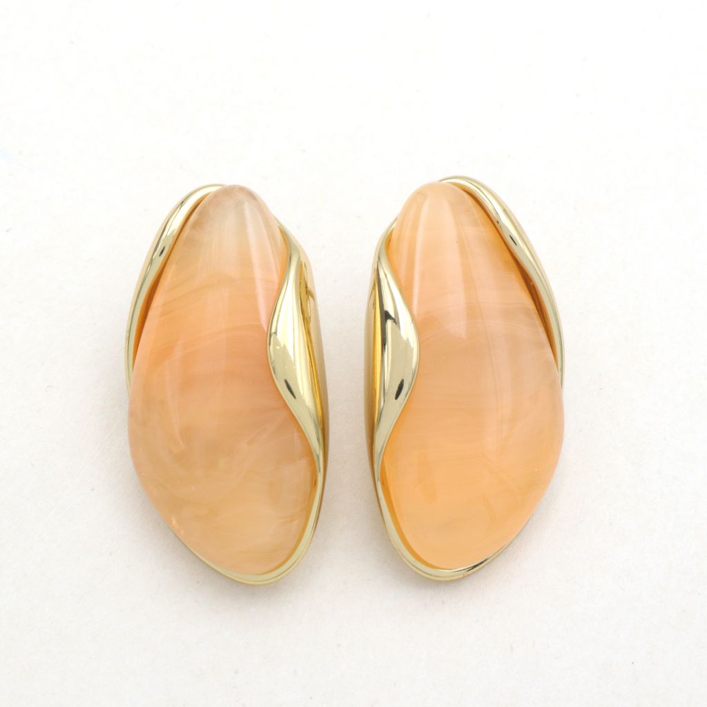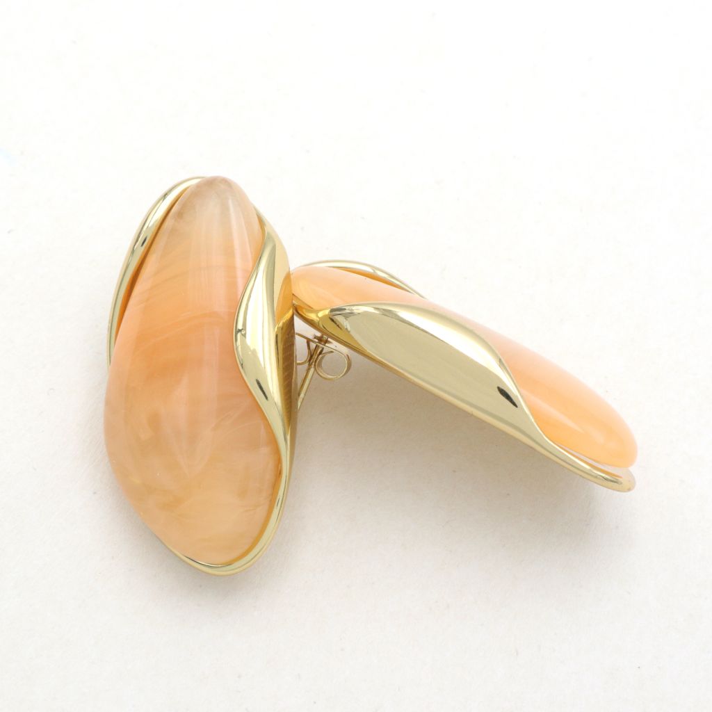 Ανακαλύψτε τη κομψότητα και την λάμψη των σκουλαρικιών Amber με μαγευτική πέτρα από ρητίνη σε σομόν χρωματισμό!