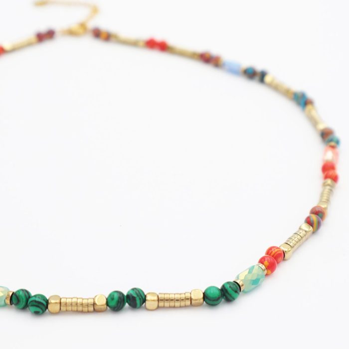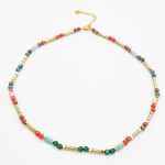 Κοντό ατσάλινο κολιέ με πολύχρωμες και χρυσές ατσάλινες χάντρες. Διαθέτει αλυσιδάκι επέκτασης.