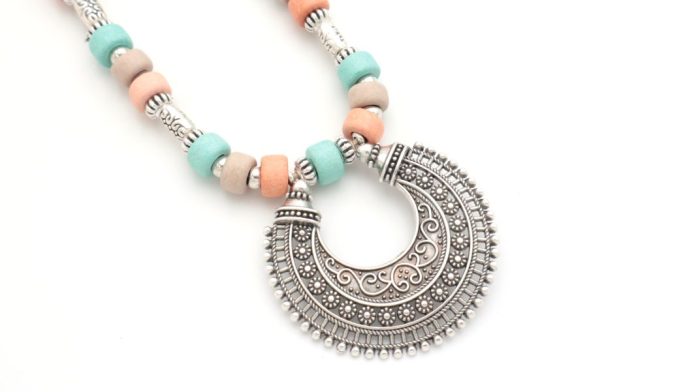 Boho κολιέ με κεραμικές χάντρες και bohemian στοιχείο