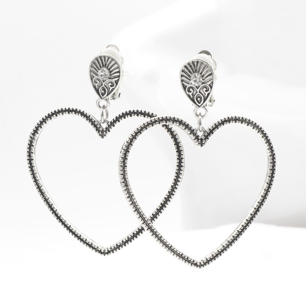 Σκουλαρίκια καρδιά με κλιπ Boho, Hearties, ασημί