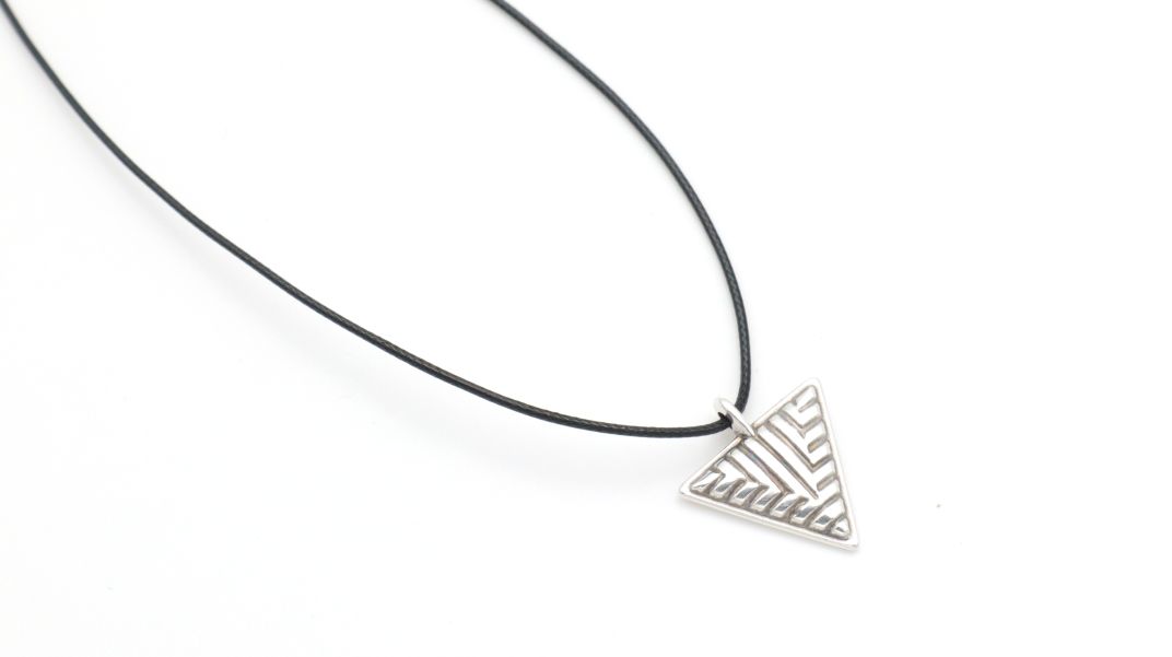 Κολιέ με μεταλλικό επαργυρωμένο 925 στοιχείο σε τριγωνικό σχήμα.