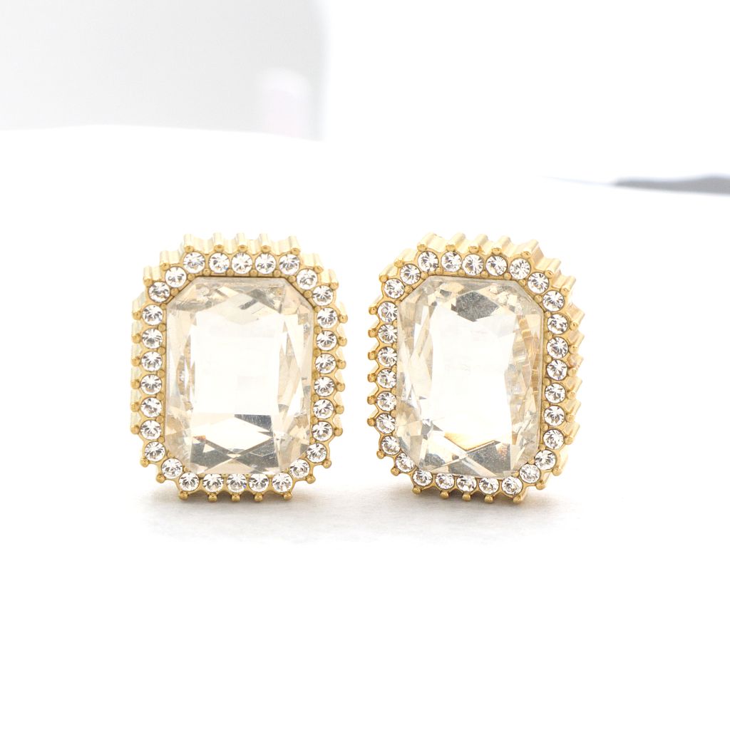 Ατσάλινα σκουλαρίκια με κλιπ (κατάλληλα και για μη τρυπημένα αυτιά) σε χρυσό χρώμα. Μεγάλα ορθογώνια σκουλαρίκια με μεγάλο κρύσταλλο και περιμετρική διακόσμηση με μικρά στρας. Κομψά και λαμπερά, για τα πιο ιδιαίτερα ντυσίματά σας. Με άνετο κούμπωμα clip.