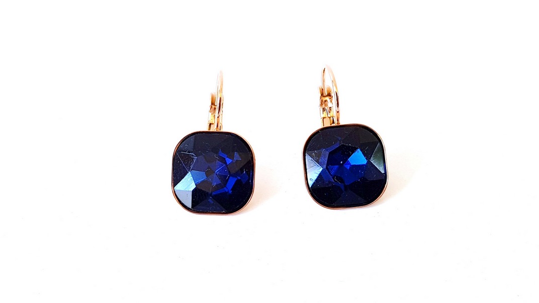 Ατσάλινα σκουλαρίκια Crystal, Square, ροζ χρυσό, μπλε