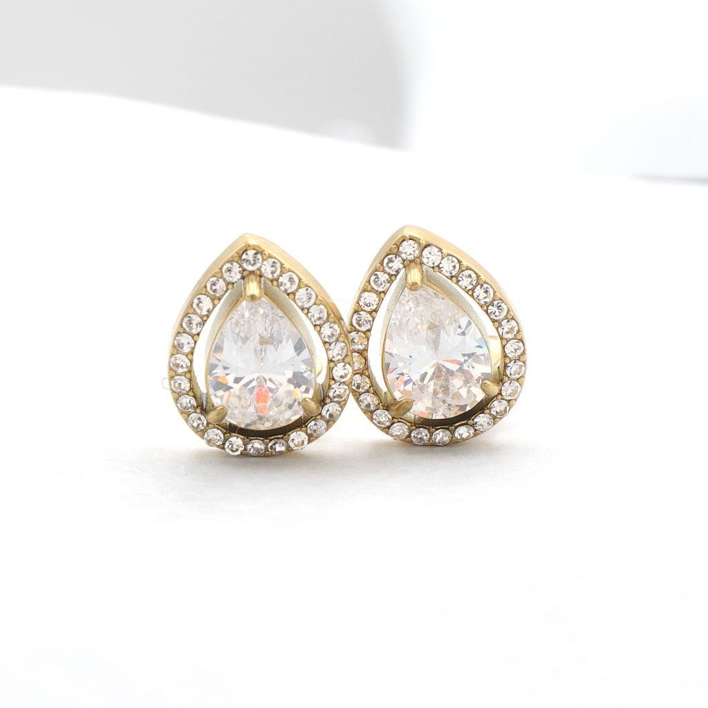 Ατσάλινα σκουλαρίκια με κλιπ, Crystal Tear, χρυσό