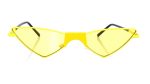 Γυαλιά ηλίου με cat eye τριγωνικούς φακούς σε κίτρινο χρώμα και κίτρινο μεταλλικό σκελετό.