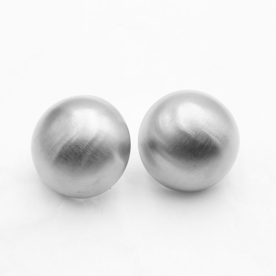 Ημισφαιρικά σκουλαρίκια με καρφάκι και ματ όψη, σε ασημί χρώμα. Μεγάλα και εντυπωσιακά, για τις πιο one of a kind εμφανίσεις σου.