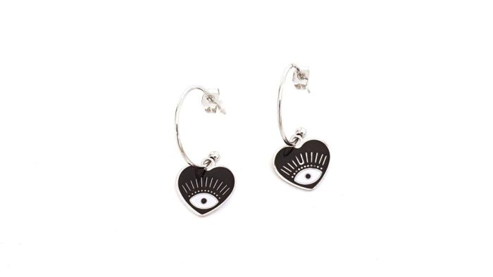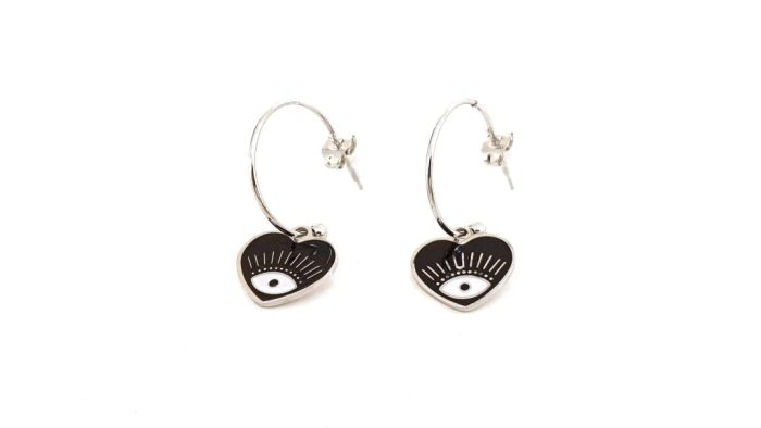 Ατσάλινα σκουλαρίκια κρίκοι Heart eye, ασημί