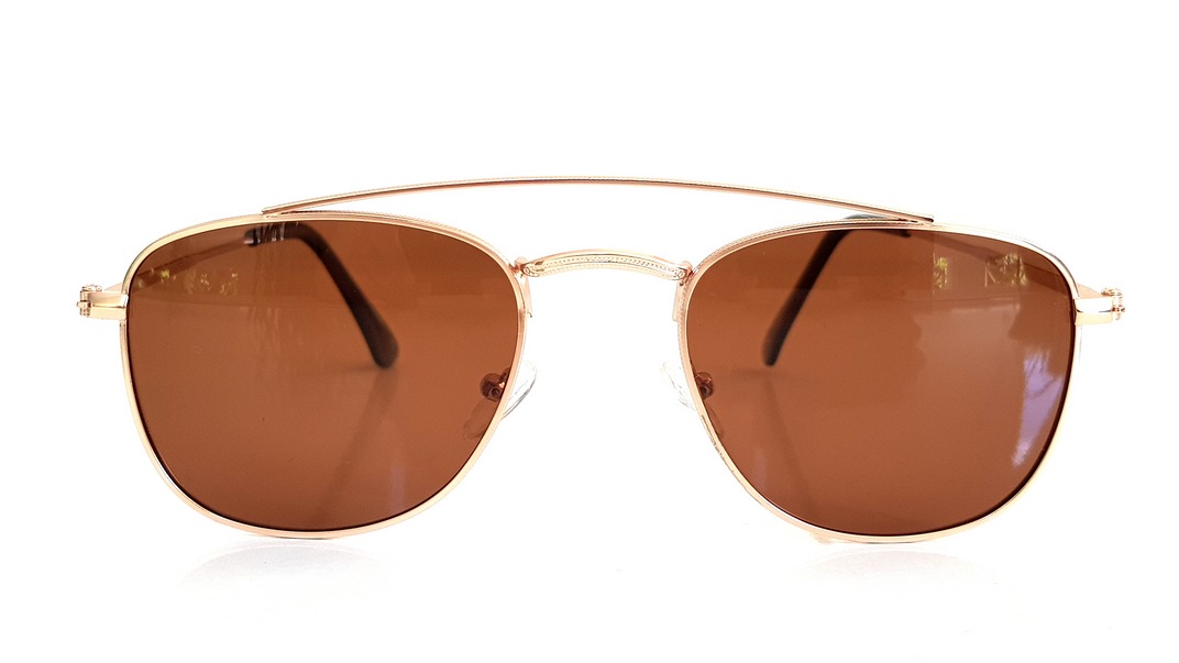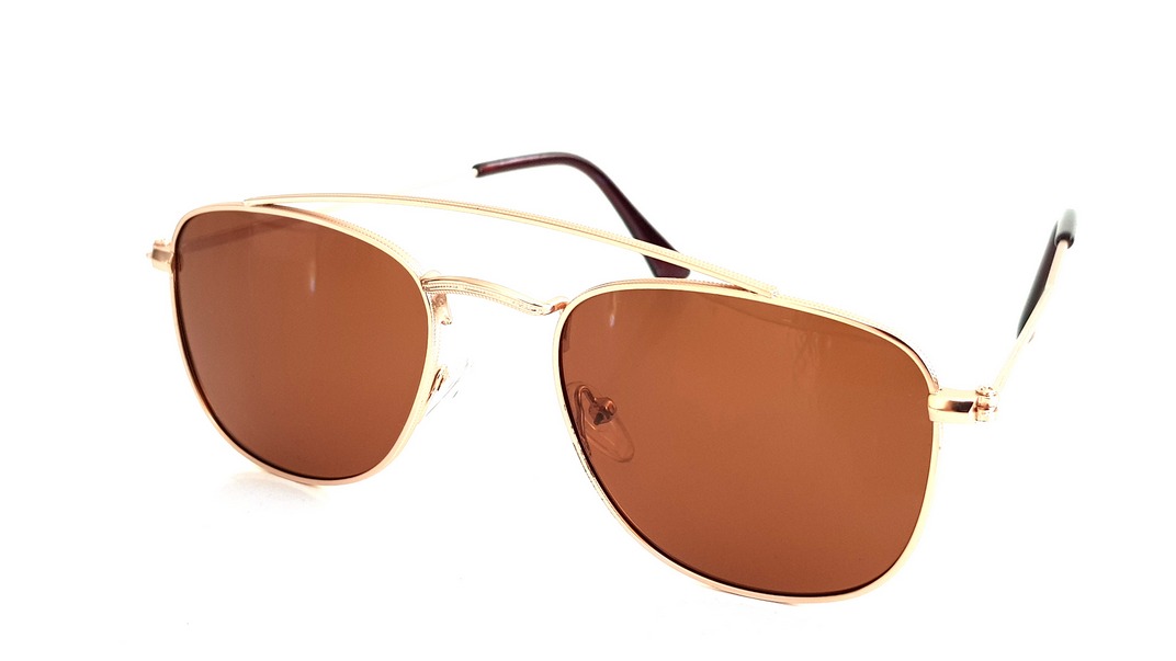Γυαλιά ηλίου με πολωτικούς φακούς (Polarized) σε καφέ χρώμα και χρυσό σκελετό.