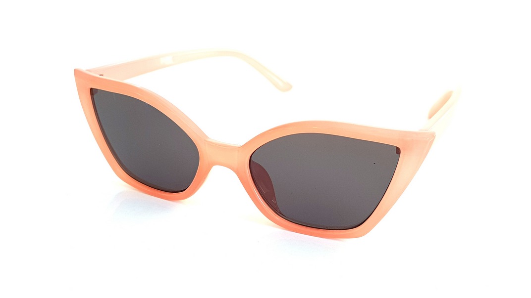 Γυαλιά ηλίου cat eye με πολυγωνικούς φακούς σε μαύρο χρώμα και σομόν σκελετό.