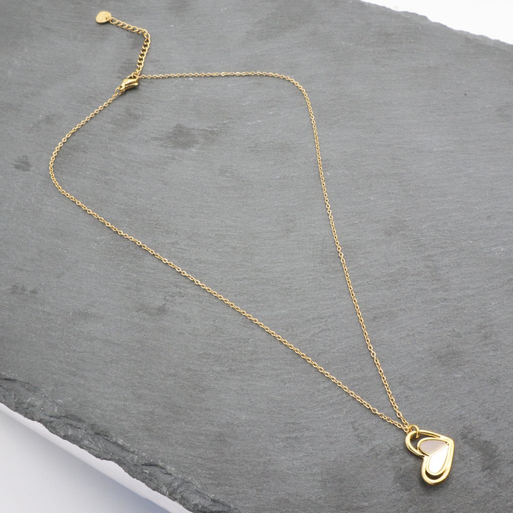 Ατσάλινο κολιέ με καρδιά και όψη φίλντισι, σε χρυσό χρώμα