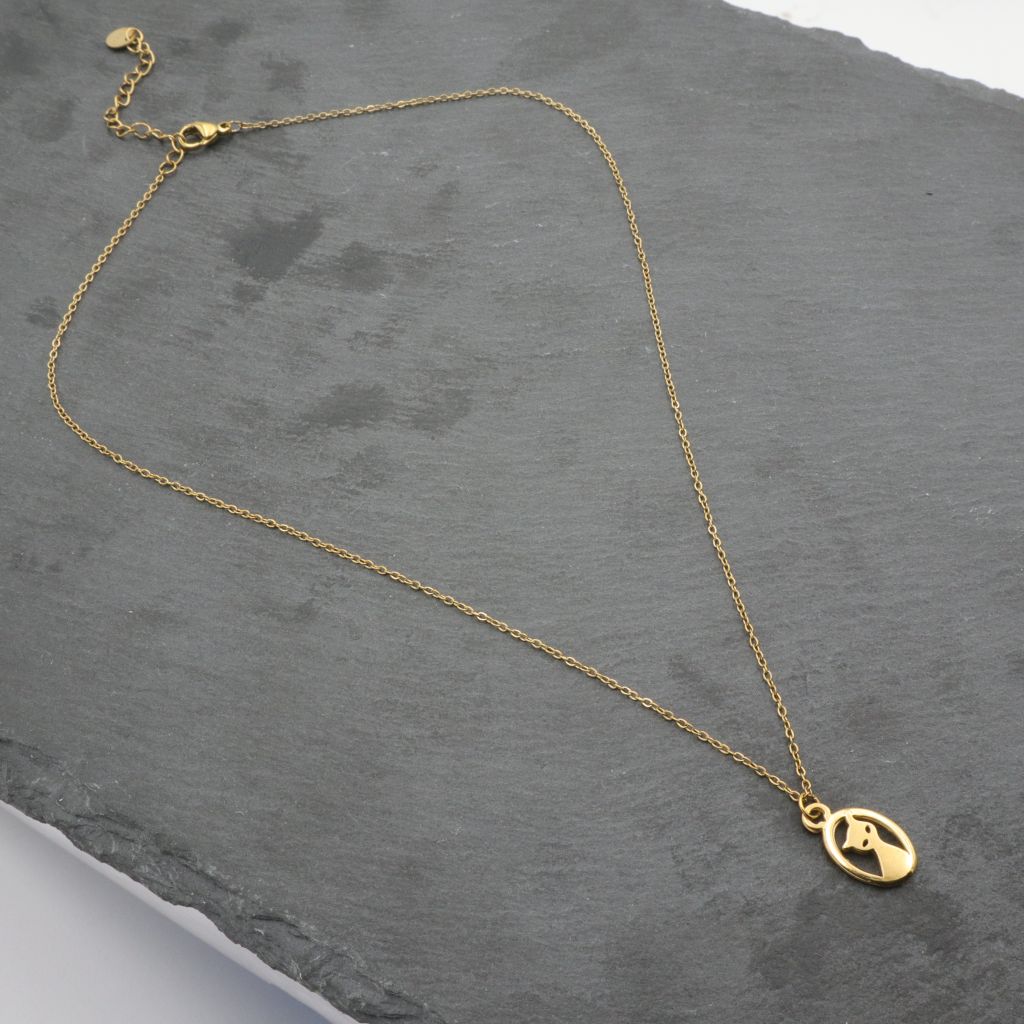 Ατσάλινο κολιέ με γάτα, χρυσό