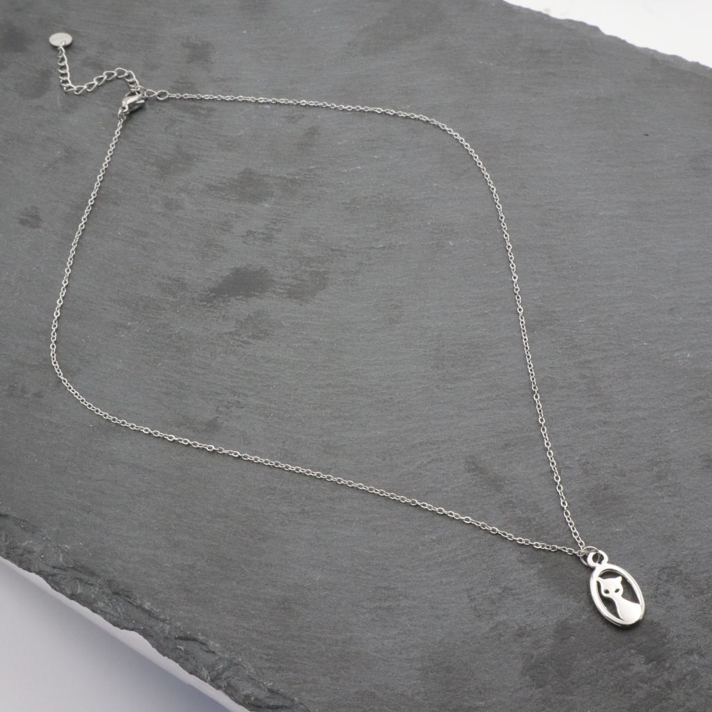 Ατσάλινο κολιέ με γάτα, σε ασημί χρώμα