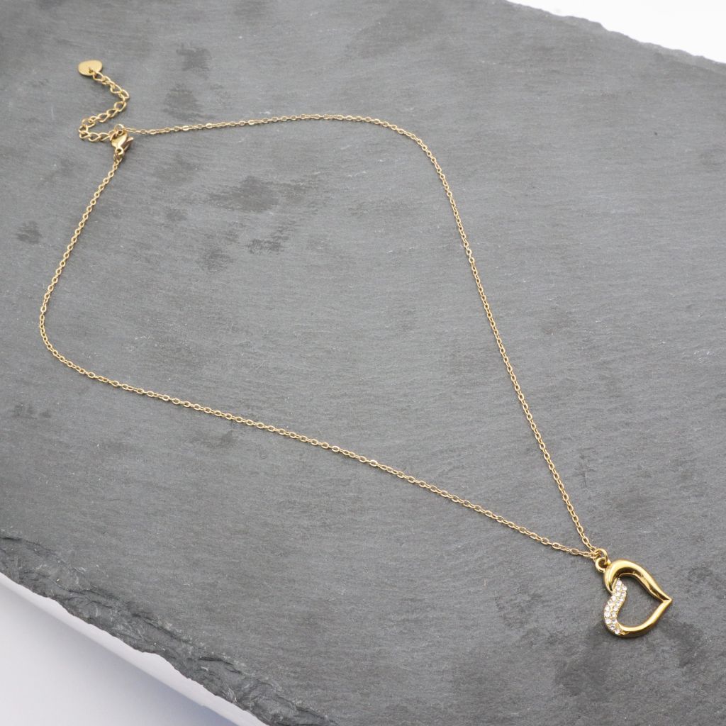 Ατσάλινο κολιέ με καρδιά και στρας, σε χρυσό χρώμα