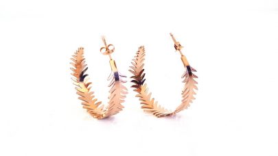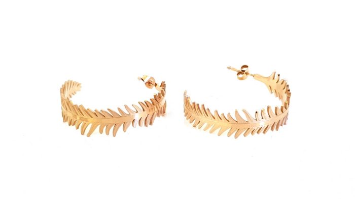 Μεσαίοι ατσάλινοι κρίκοι σε ροζ χρυσό χρώμα, με σχέδιο φύλλο.
