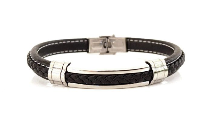 Βραχιόλι από πλεκτό δέρμα και ατσάλι