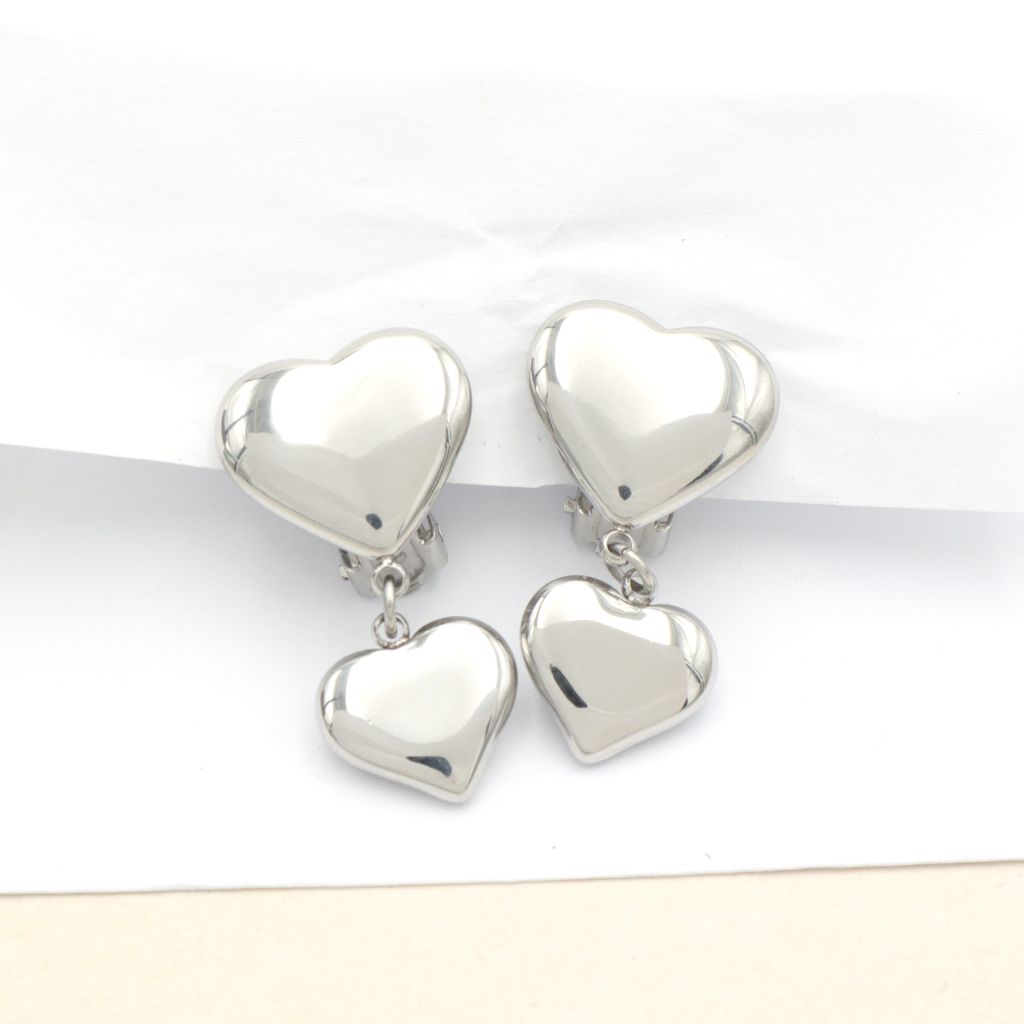 Ατσάλινα σκουλαρίκια με κλιπ και καρδιά, Love Swing, ασημί