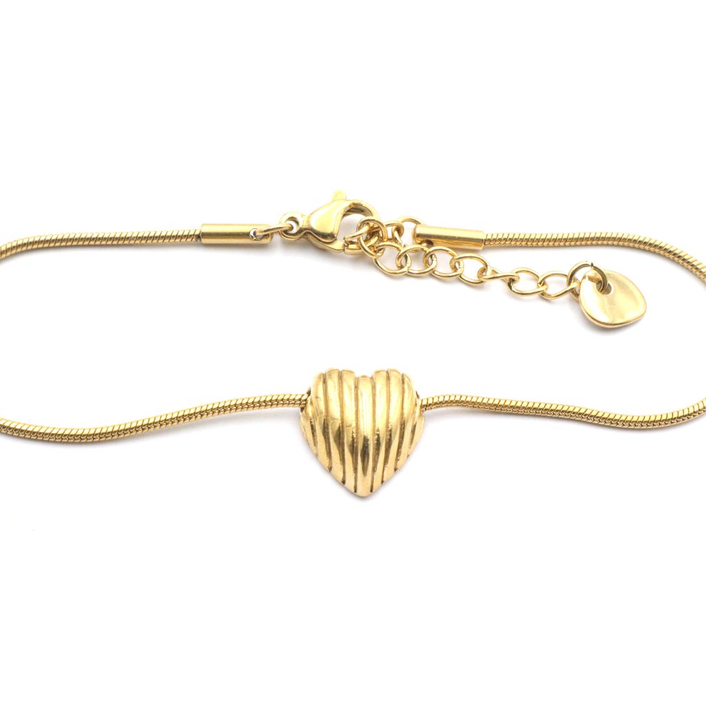 Ατσάλινο βραχιόλι με καρδιά σε χρυσό χρώμα