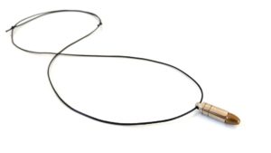 Κολιέ με μεταλλική σφαίρα κρεμασμένη σε μαύρο ή κόκκινο κορδόνι. Χωρίς κούμπωμα, προσαρμόζεται στο ύψος που επιθυμείτε, τραβώντας τα δύο κορδόνια στο τελείωμα.
