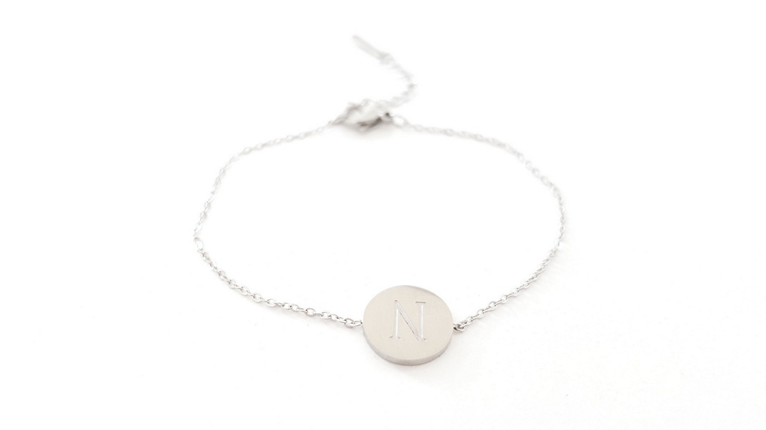 Ατσάλινο βραχιόλι με μονόγραμμα, Ν, ασημί