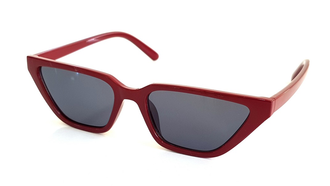 Γυαλιά ηλίου με cat eye φακούς σε μαύρο χρώμα και μπορντώ σκελετό.