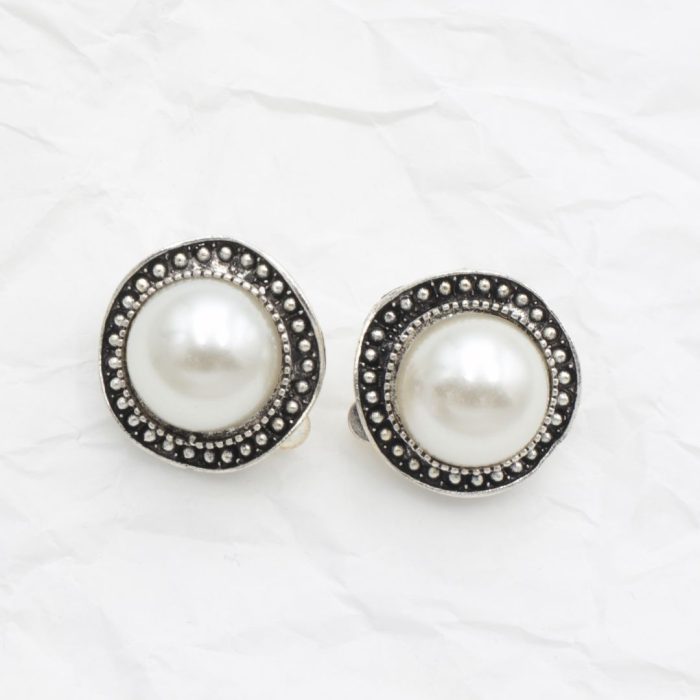 Σκουλαρίκια με κλιπ (κατάλληλα για μη τρυπημένα αυτιά), σε ασημί χρώμα, διακοσμημένα με ακρυλική πέρλα.