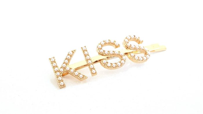 Κλιπ για τα μαλλιά που σχηματίζει τη λέξη KISS, διακοσμημένο με πολλές μικρές λευκές πέρλες. Must have αξεσουάρ για το styling των μαλλιών σας!
