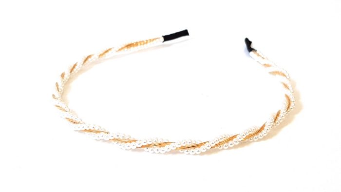 Μεταλλική στέκα μαλλιών διασκομημένη με 2 στριφτές σειρές από μικρές πέρλες.