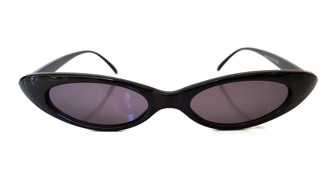 Γυαλιά ηλίου με στενόμακρους οβάλ μαύρους φακούς και μαύρο σκελετό σε cat eye γραμμή.