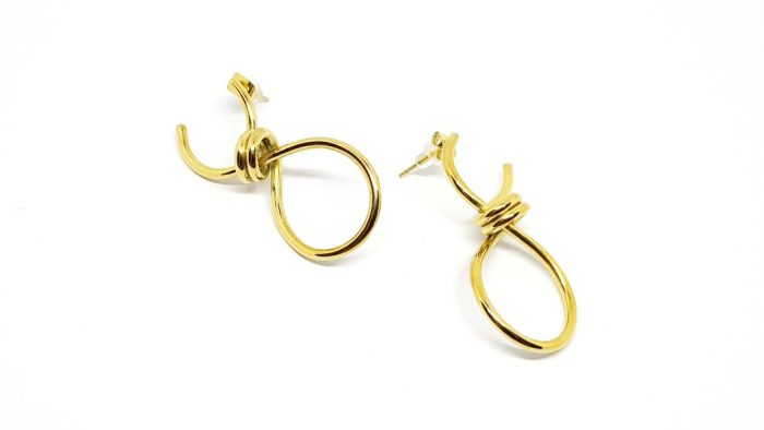Σκουλαρίκια με καρφάκι, μεσαίου μήκους, σε χρυσό χρώμα, από επιχρυσωμένο (18Κ yellow gold) χαλκό, με σχέδιο κόμπο.