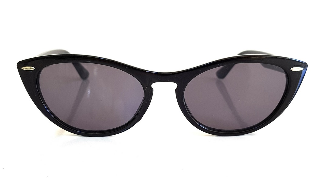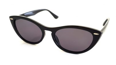 Γυαλιά ηλίου cat-eye με μαύρο σκελετό και μαύρους φακούς.