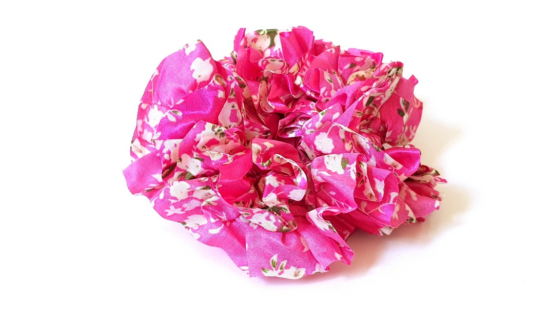Μεγάλο υφασμάτινο λάστιχο-σούρα μαλλιών, με floral σχέδια, σε φούξια χρώμα. Μία vintage τάση που κάνει δυναμικό come back κι αποτελεί απαραίτητο αξεσουάρ της σεζόν για την αλογοουρά σας!