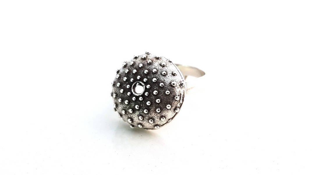 Δαχτυλίδι από ορείχαλκο, σε ασημί χρώμα, σε σχήμα αχινού.
