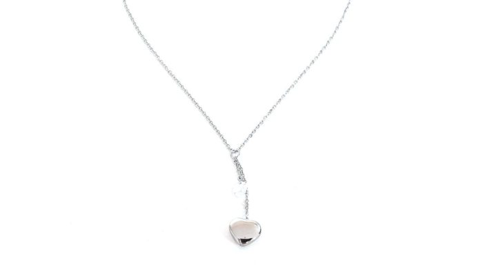 Κοντό ατσάλινο κολιέ σε ασημί χρώμα, με λεπτή αλυσίδα και κρεμαστή καρδιά και στρας. Διαθέτει αλυσιδάκι επέκτασης.