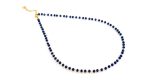 Κοντό κολιέ ροζάριο με ψιλές μπλε σκούρες κρυστάλλινες χάντρες, με ατσάλινους συνδέσμους σε χρυσό χρώμα. Διαθέτει αλυσιδάκι επέκτασης.