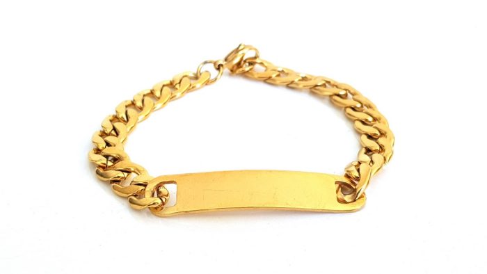 Home » Κατάστημα » Ατσάλινο βραχιόλι αλυσίδα, ID Thick, χρυσό