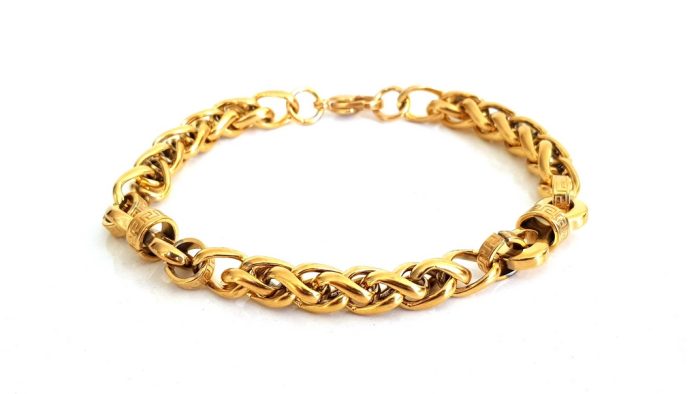 Ανδρικό βραχιόλι από ατσάλινη επιχρυσωμένη αλυσίδα. Κούμπωμα με παπαγαλάκι.