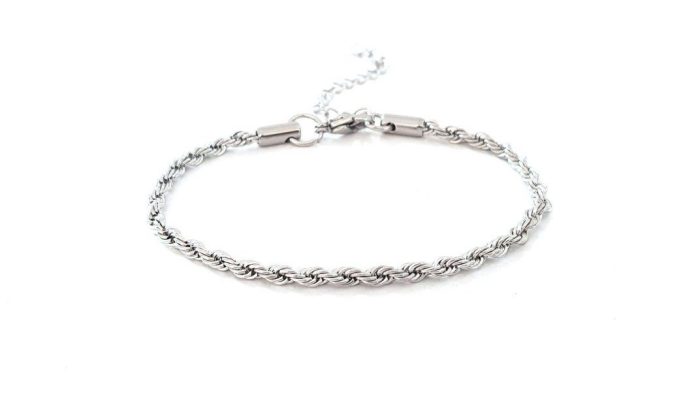 Ατσάλινο βραχιόλι αλυσίδα, Thin rope, ασημί