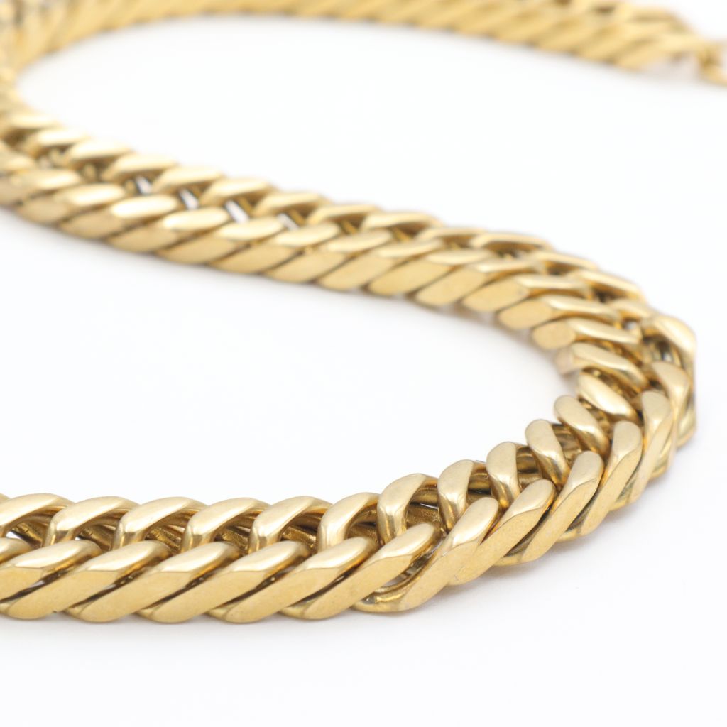 Χοντρή ατσάλινη αλυσίδα λαιμού σε χρυσό χρώμα, με στενά συνδεδεμένους συνδέσμους που δημιουργούν μια πιο πυκνή αλυσίδα. Το ανοξείδωτο ατσάλι σε συνδυασμό με τη σωστή επιχρύσωση καθιστά την αλυσίδα ανθεκτική σε νερό και ιδρώτα, άρα και ιδανική για όλες σου τις δραστηριότητες.