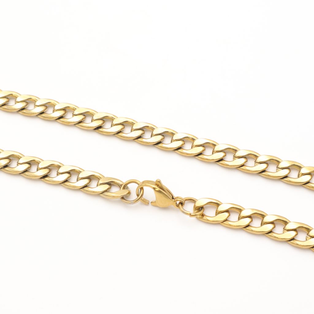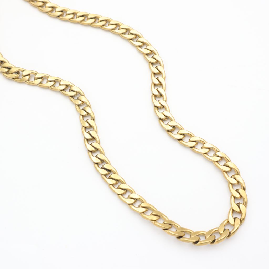 Μακριά ατσάλινη αλυσίδα λαιμού, με κλασικό και διαχρονικό σχέδιο, σε χρυσό χρώμα. Το ανοξείδωτο ατσάλι σε συνδυασμό με τη σωστή επιχρύσωση καθιστά την αλυσίδα ανθεκτική σε νερό και ιδρώτα, άρα και ιδανική για όλες σου τις δραστηριότητες.