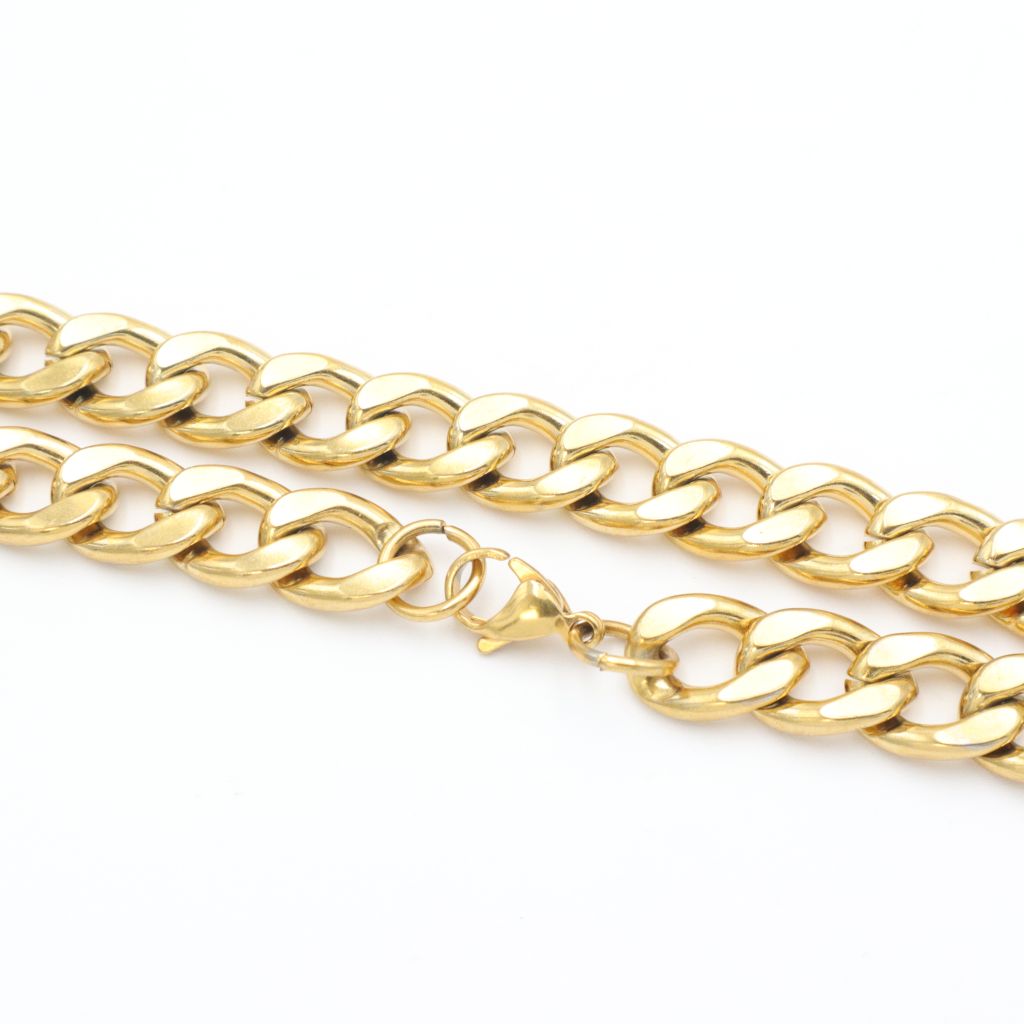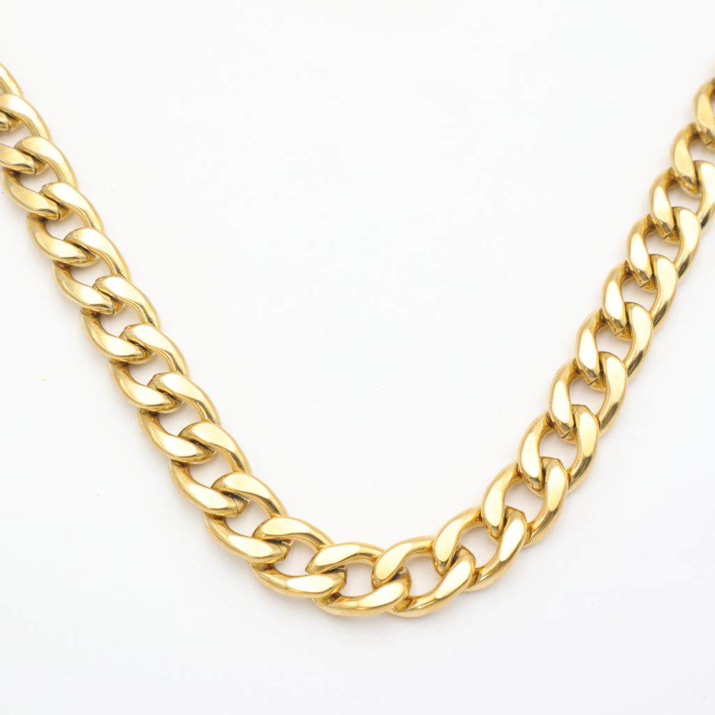 Χοντρή ατσάλινη αλυσίδα λαιμού, με κλασικό και διαχρονικό σχέδιο, σε χρυσό χρώμα. Το ανοξείδωτο ατσάλι σε συνδυασμό με τη σωστή επιχρύσωση καθιστά την αλυσίδα ανθεκτική σε νερό και ιδρώτα, άρα και ιδανική για όλες σου τις δραστηριότητες. ατσάλινη αλυσίδα.