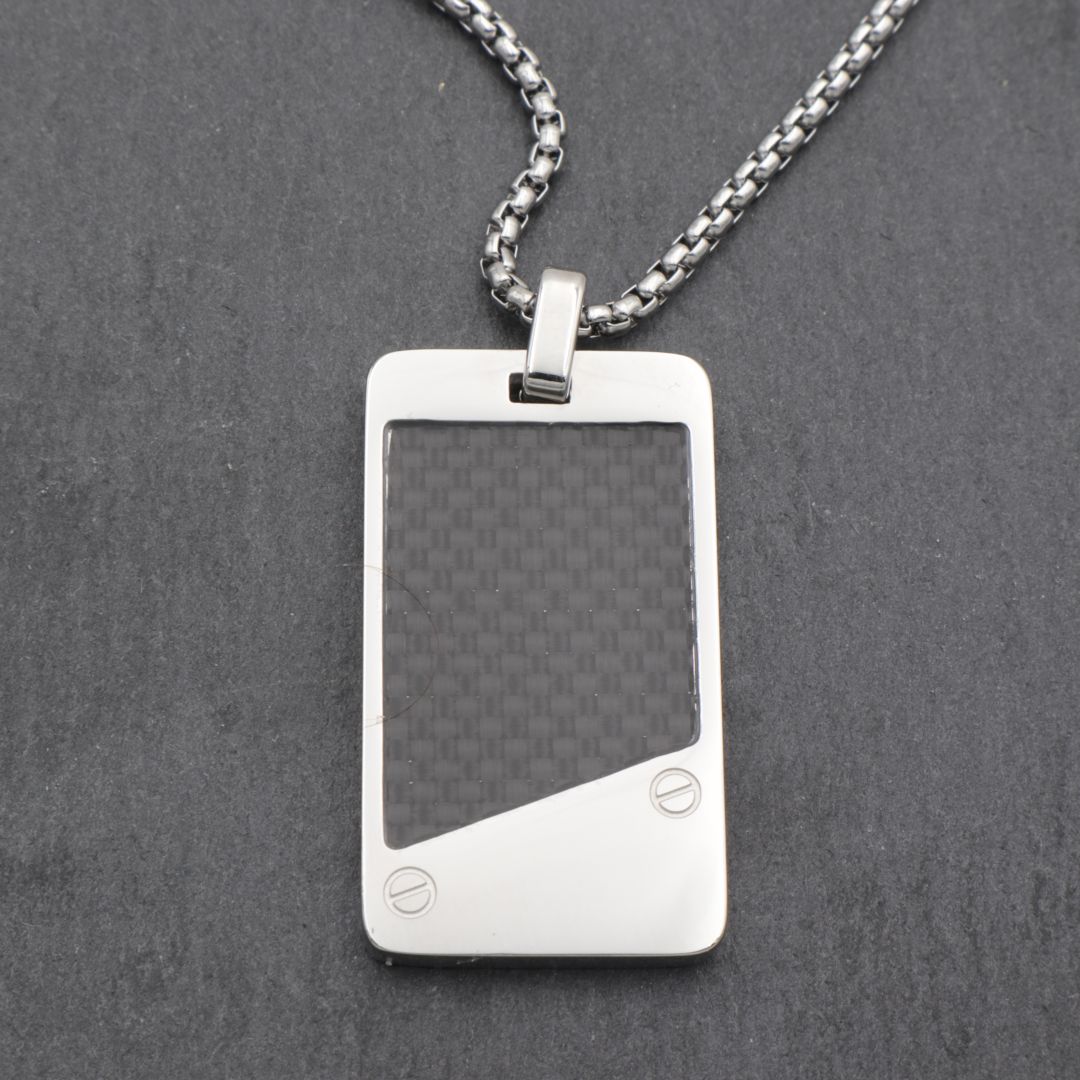 Ατσάλινο κολιέ με χοντρή αλυσίδα και κρεμαστό στοιχείο με πάνελ με βίδες.